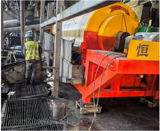 由于車間設(shè)備布局緊湊,該磁選機無法被直接用天車吊起更換。為安全快速更換磁選機,維修主任楊桂福出謀劃策,提前制作四組滾輪,為磁選機安裝了“輪滑鞋”,利用卷揚機將磁選機拉出車間,不但節(jié)約維修時間,而且大幅度降低吊裝作業(yè)產(chǎn)生的安全風險。